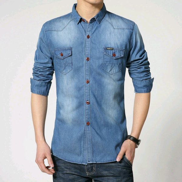 pakaian pria lengan panjang keren - atasan baju jeans tebal - kemeja jeans lengan panjang - baju pesta kondangan laki laki cowok murah kekinian
